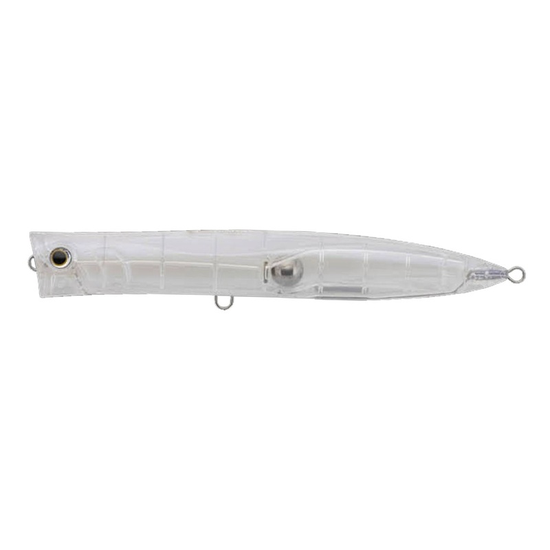 The Maria Duckdive is a slim long casting lure designed with a smaller cup, giving a more subtle action for those more tentative fish not after the heavy displacement that poppers with a larger cups provide. The action is a shallow dive just bellow the surface with nice frothy bubble trail that follows. It has a sliding bearing system that pushes weight to the tail when casting provide exceptional distance.