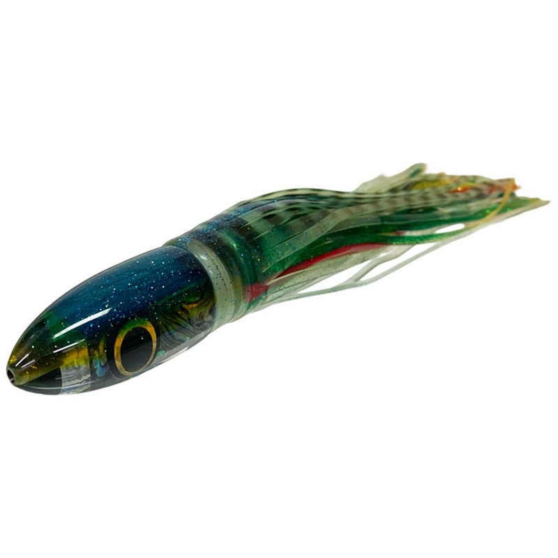 The Polu Kai 9″ Rocket Man is a carefully designed, weighted bullet that runs well from any position in the spread. A great lure to run from the Outriggers or Shotgun. A stand-out lure for big Yellowfin & Southern Bluefin Tuna, Striped Marlin, Mahi Mahi, Wahoo and most other gamefish. The Rocket Man is a secret weapon for Blue Marlin! The forward eye placement is designed to mimic a flying fish.