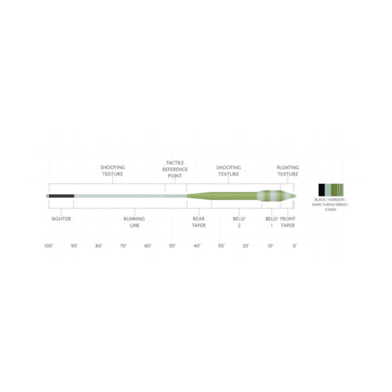 - High-contrast sighter to identify the back of the line when fighting fish; camo tip for stealth