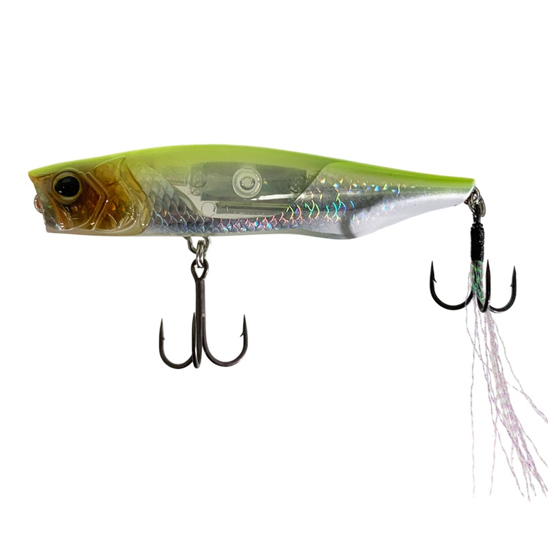 The Shimano Bantam Ligen 66F Flash Boost Lure is a pencil popper capable of three different actions; walking the dog, popping, and diving. Among these various actions, the diving action is the one Shimano focused on the most during development. When the rod tip is lowered and the rod is bounced three times, the popper dives and moves side to side in the water. Often a bite will occur while surfacing from this dive. Of course, while surfacing or pausing, the sparkling of the Flash Boost feature will continue to attract fish, even when idle. Additionally Scale Boost adds to the appeal of this lure, with super realistic baitfish imitations really bringing these lures to life.